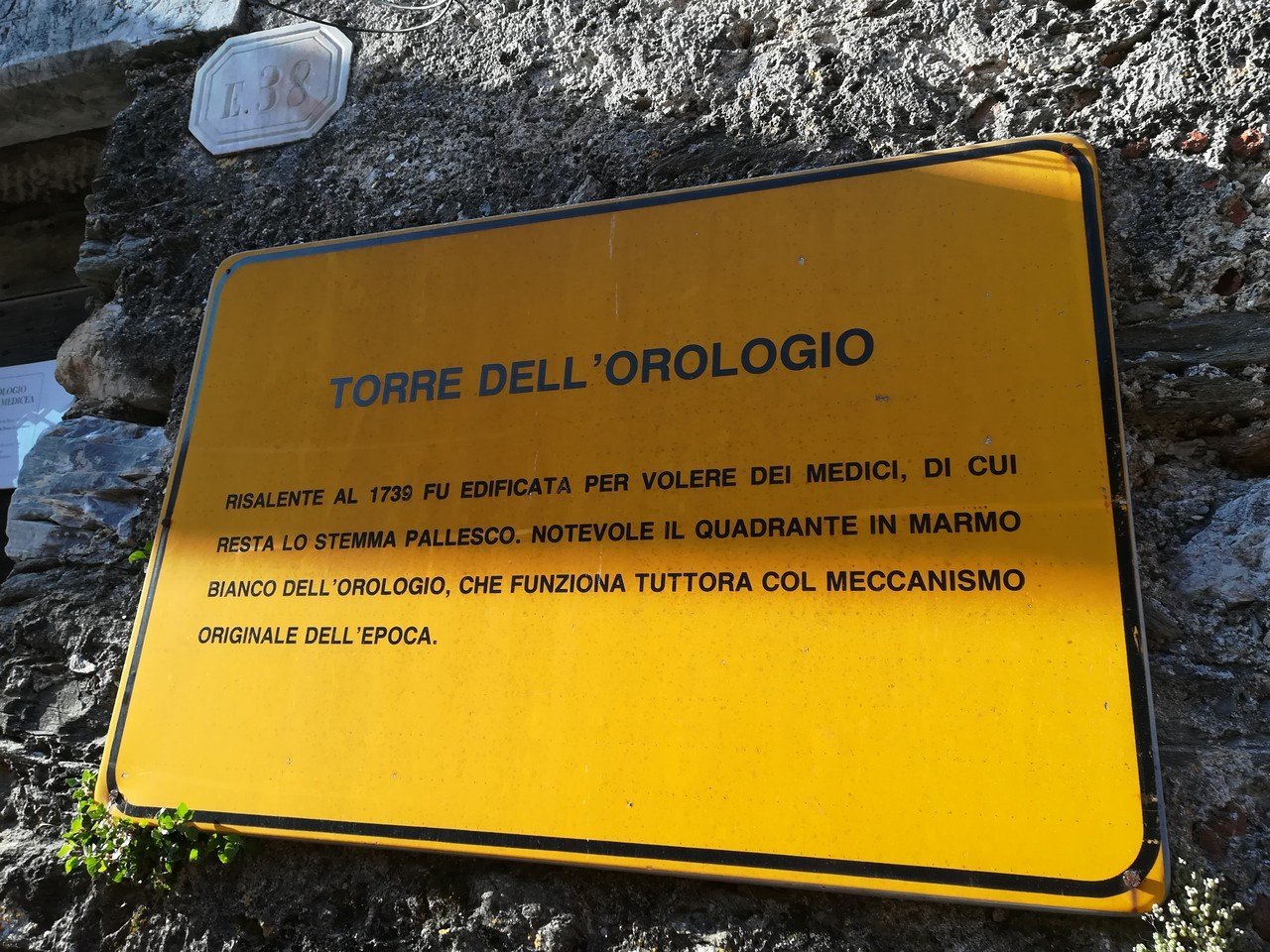 Entriamo in paese, all’angolo della piazza Umberto I, e troviamo un altro segno mediceo: la torre delle ore, costruita nel 1738 e dotata di stemma.