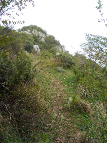 Fuori dal bosco si ricomincia a salire attraverso prati e rocce esposte.