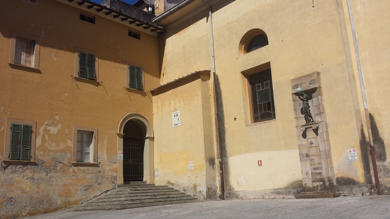 In cima al colle Fregionaia, siamo geograficamente sul territorio di Santa Maria a Colle, si estende ancora oggi una grande costruzione dalle pareti di un rosso-arancio, scolorito, invecchiato, che domina la vallata circostante.