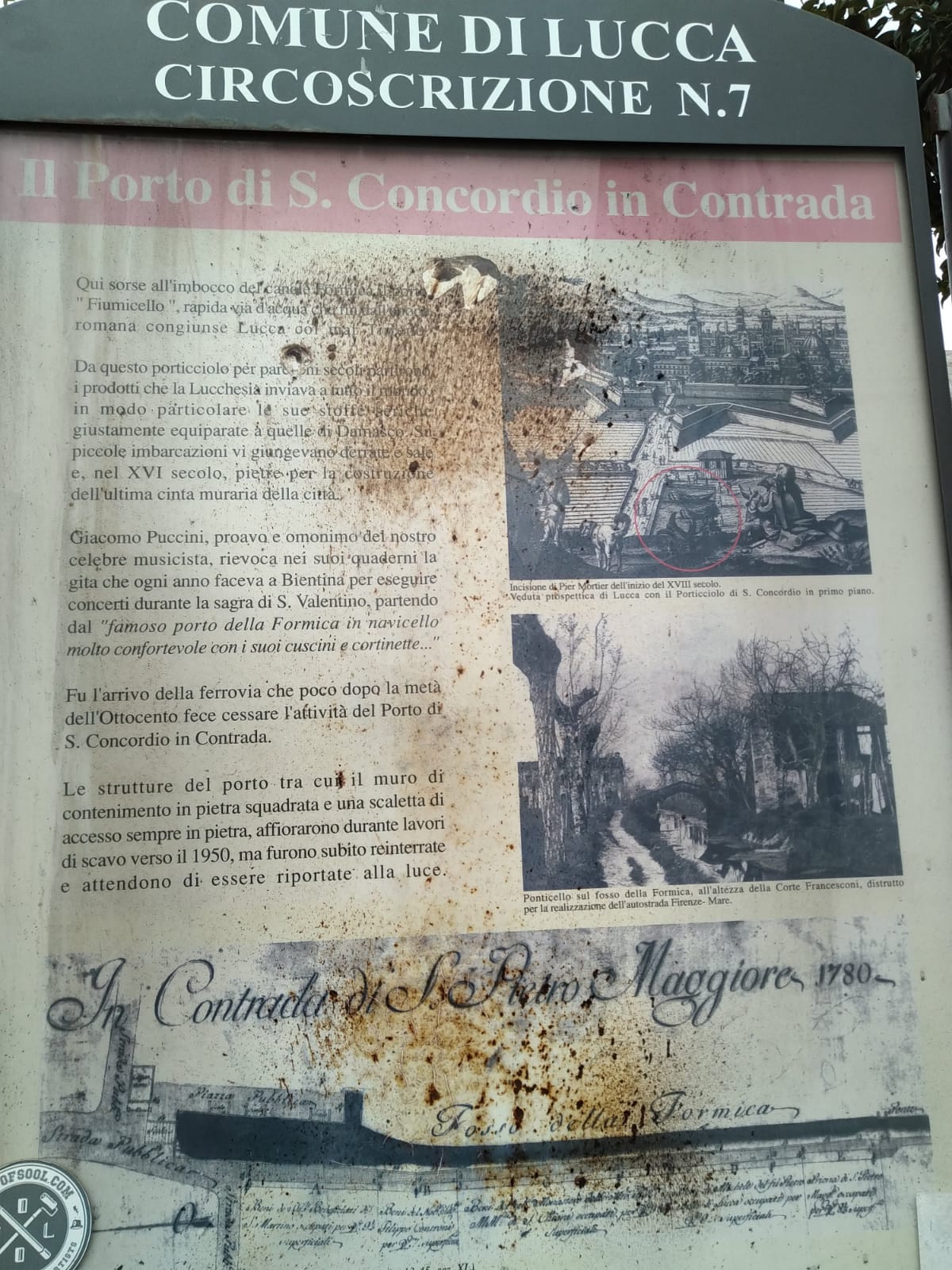 Se volete ricordare quel particolare passato, vi consigliamo prima di seguire le iniziative e la battaglia storica che segue la contrada di San Concordio da molti anni, incentivata dagli scavi eseguiti nel 2009 e 2010 dalla sopraintendenza archeologica di Firenze all’interno dell’area Gesam: in piccola parte, se volete solo seguire la vostra curiosità sul fatto del porto, del canale della Formica, dei viaggi del Puccini che non era il Puccini più famoso, fate un salto al “Porto di Lucca” e nella zona circostante, così potrete immaginare le meraviglie che ancora questa città nasconde, magari camminando potrete sentire ancora le acque del Fiumicello scorrere sotto i vostri piedi.