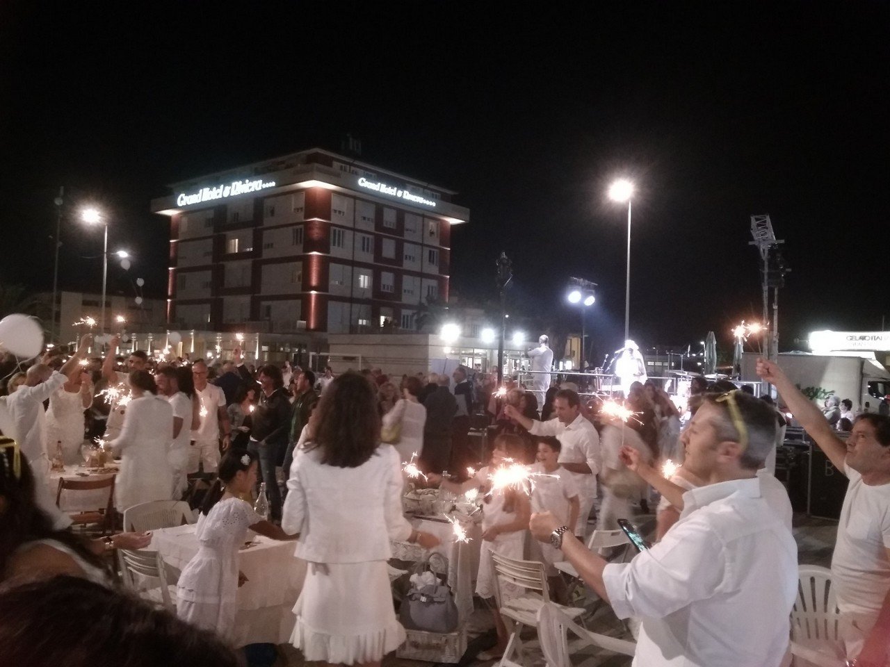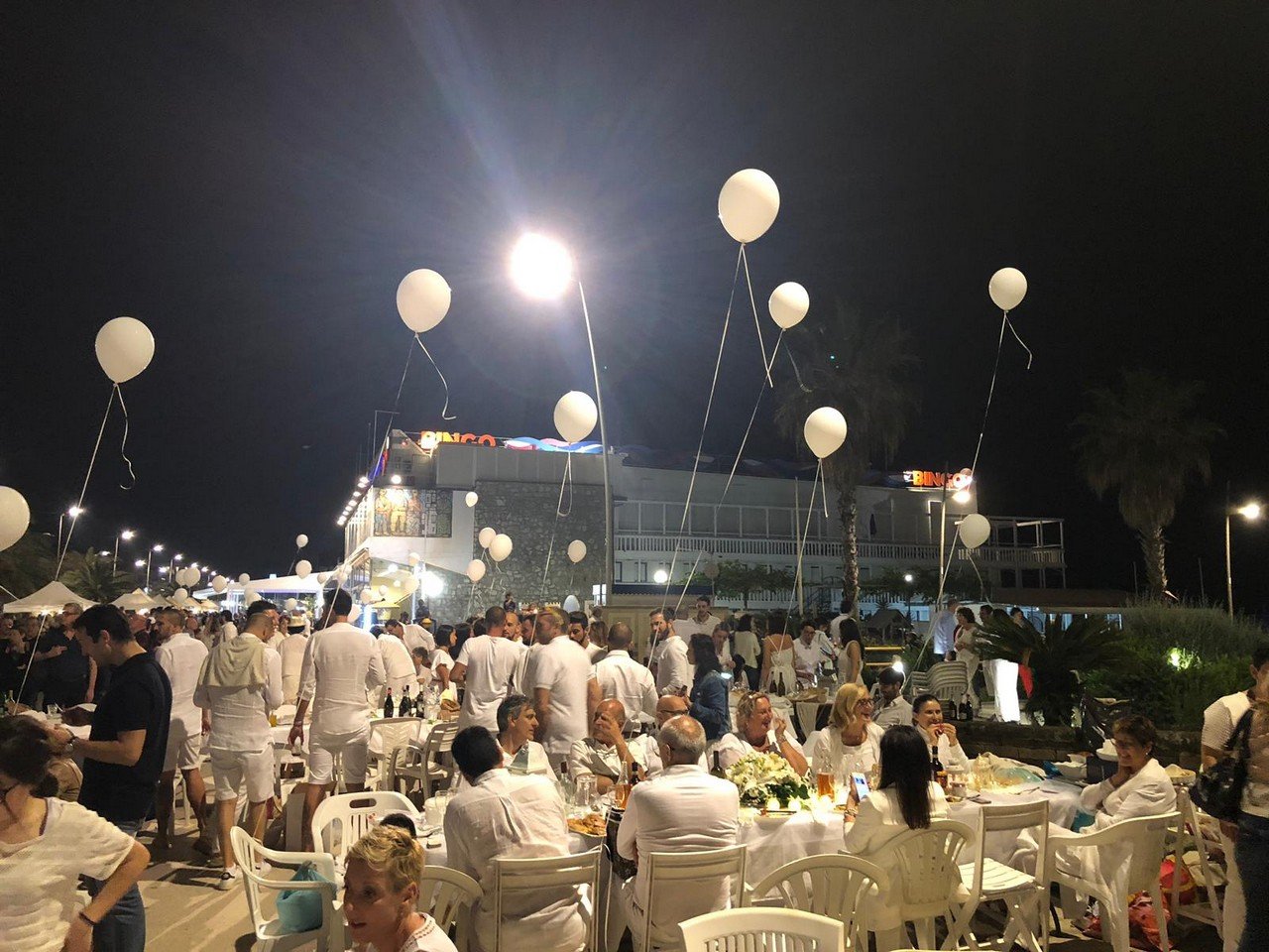La prima edizione dello White Party si svolse a Villa Mansi a Capannori (Lucca) nel giugno del 2014. Da allora, visto l’inaudito successo (un esercito di 450 persone tutte in bianco!) ogni anno l’evento viene ripetuto in spettacolari location sparse qua e là per la provincia o la città di Lucca. Così nel 2015 l’insolito banchetto invase Piazza Napoleone (Piazza Grande per i lucchesi), mentre nel 2016 e 2017 si orientò su Viareggio, prima in Piazza Mazzini e in seguito sull’arenile accanto al Principino (davanti al lussuoso hotel Principe di Piemonte), nel 2018 di nuovo a Lucca centro, stavolta nella bellissima Piazza San Michele per tornare poi, in questa appena conclusa edizione 2019, alla suggestiva apparecchiatura in fronte mare, questa volta a Lido di Camaiore.