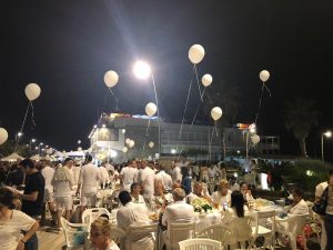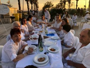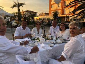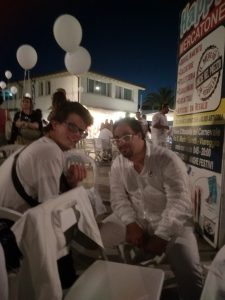 Sabato 8 giugno 2019, davanti al pontile del Lido di Camaiore si sono ritrovate famiglie, amici, conoscenti e simpatizzanti delle associazioni Andare Oltre si può (Lucca), di A.I.P.D. (sez. Versilia), dell’Associazione Down Lucca e di L’amore non conta i cromosomi (Lucca), per partecipare tutti assieme ad un festoso evento picnic con tavoli, sedie e cibo portati da casa, all’insegna dell’amicizia, del gusto, dell’eleganza e dello stile. Elemento indispensabile per la condivisione dell’annuale evento ideato da Andare Oltre Si Può, a parte la libera fantasia, è l’uso esclusivo del colore bianco sia per l’apparecchiatura che per gli stessi abiti e i materiali di ‘una volta’ quindi solo piatti in ceramica, bicchieri di vetro e niente plastica e lattine sulle tavole imbandite ed estrosamente decorate (vedi foto).